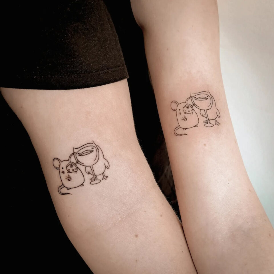 Společná tetování pro páry, pro kamarádky, postavičky zvířátek na ruce