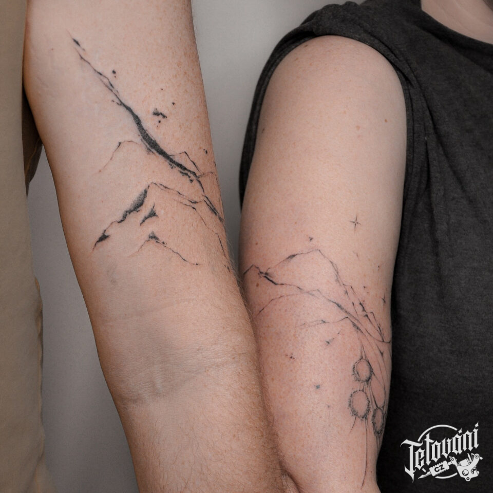Společná tetování pro páry, pro kamarádky, příroda, hory na ruce