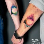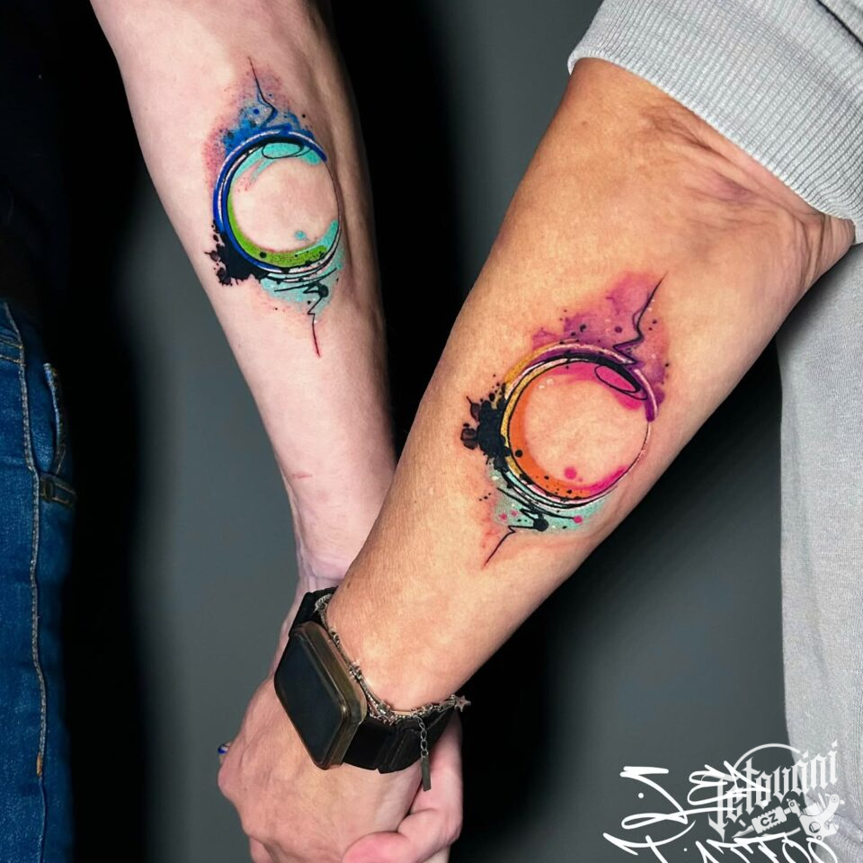 Společná tetování pro páry, tvary, abstrakní kruhy na předloktí