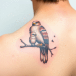Společná tetování pro rodiče a dítě, ptáci na větvičce na zádech