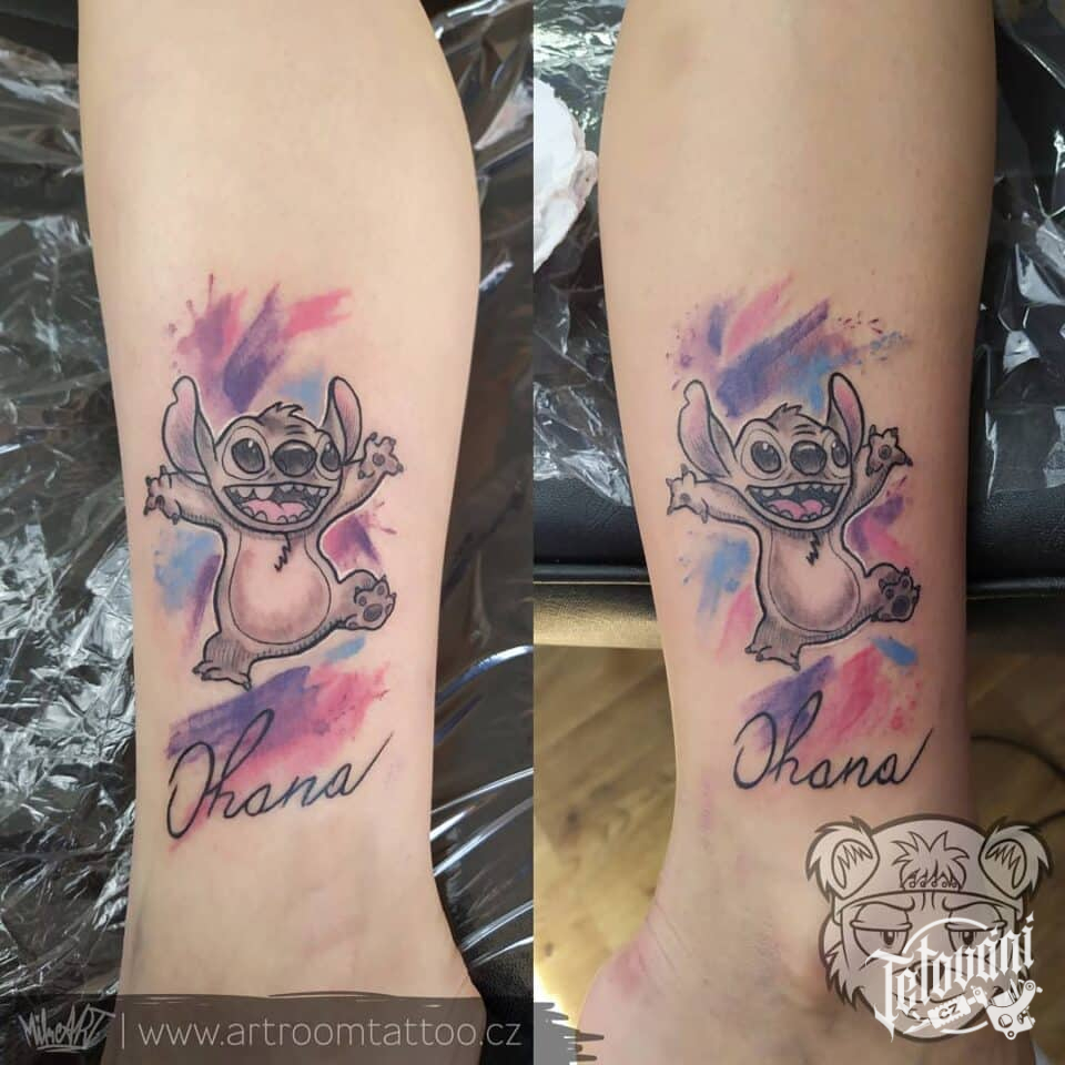 Společná tetování pro sestry, z filmů a pohádek, postavička Stitch na noze