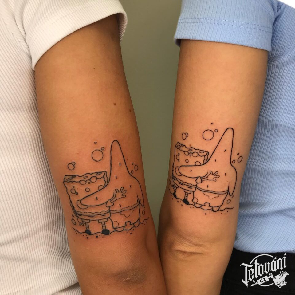 Společná tetování pro sestry, z filmů a pohádek, Spongebob a Patrik na paži