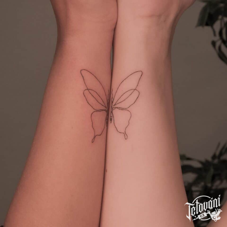 Společná tetování pro sestry, zvíře motýl na předloktí