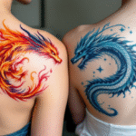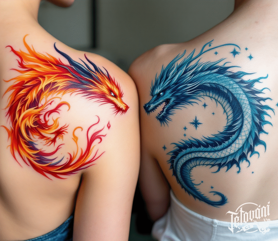 Společná tetování pro zamilované páry, mýtické bytosti, draci na lopatce