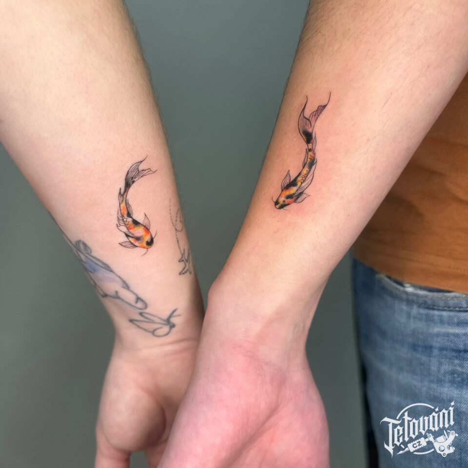 Společná tetování pro zamilované páry, ryby na předloktí