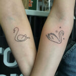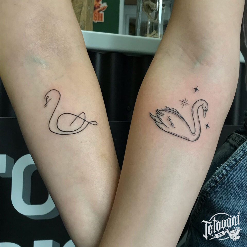 Společná tetování pro zamilované páry, zvířata, ptáci labutě na předloktí