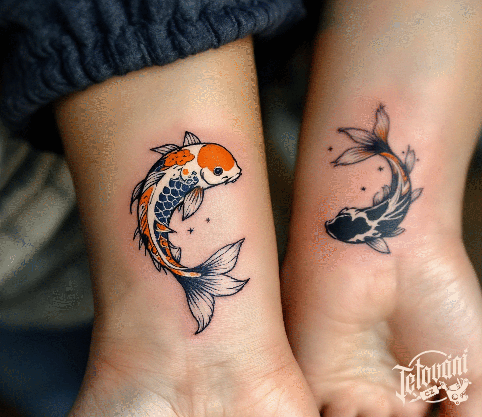 Společná tetování pro zamilované páry, zvířata, ryby znamení zvěrokruhu na zápěstí
