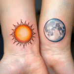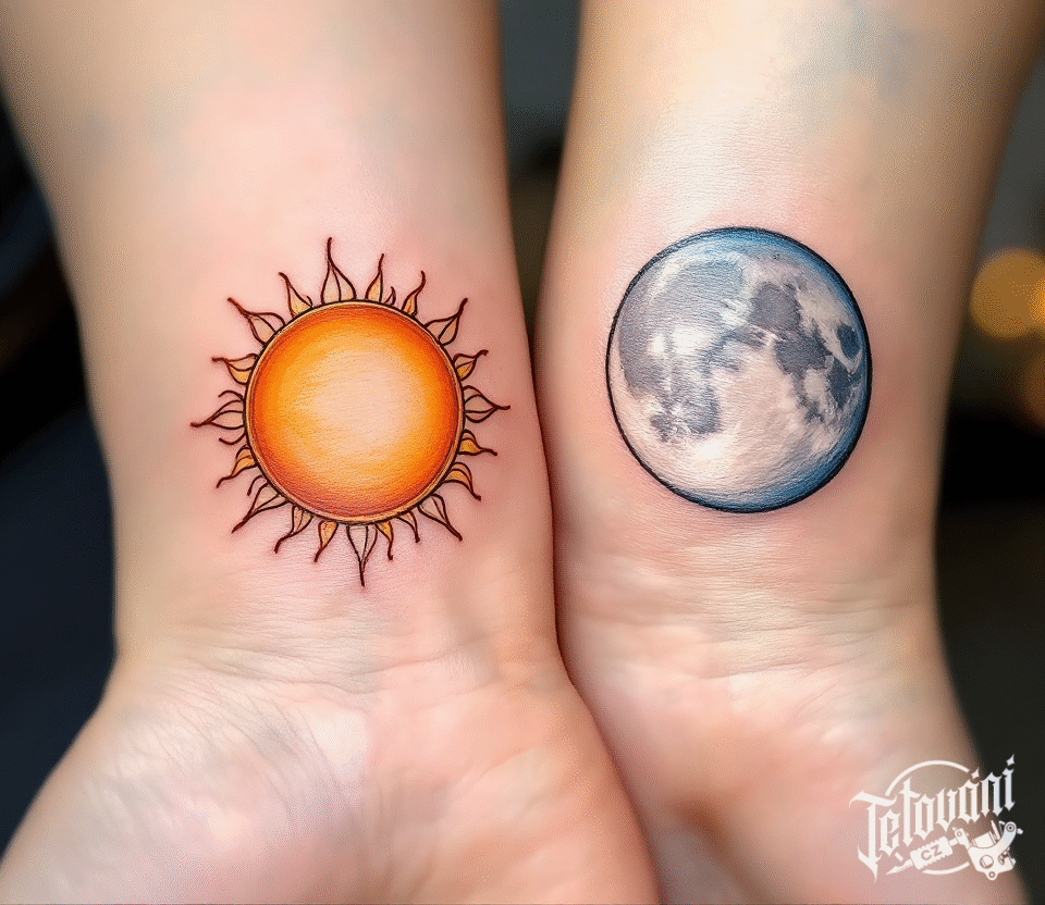 Společná tetování pro zamilované, pro páry, Slunce a Měsíc na zápěstí