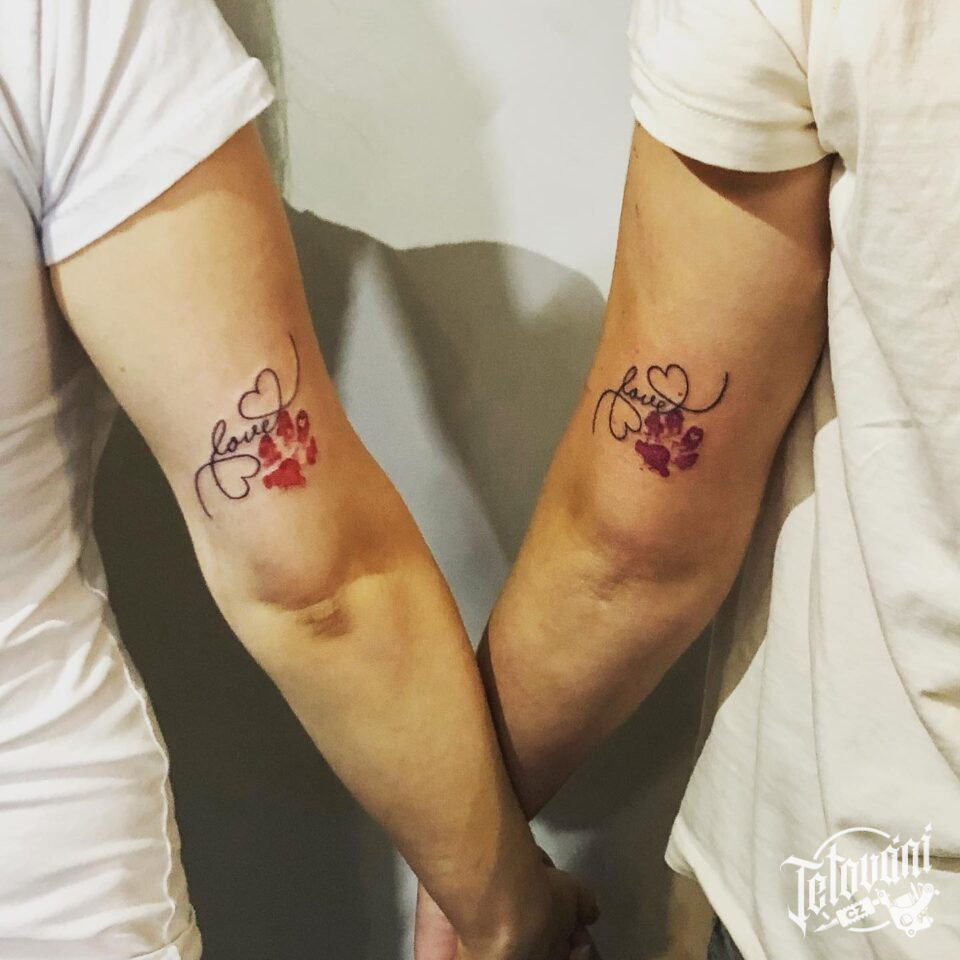 Společná tetování psí tlapky na paži