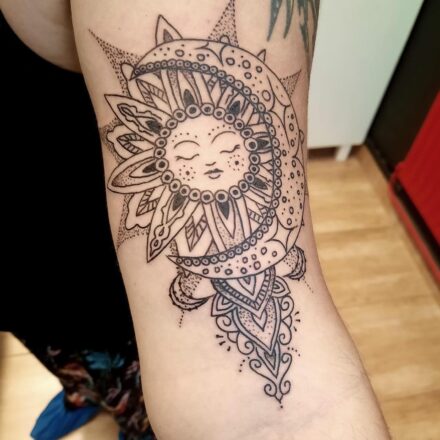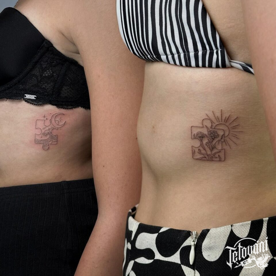 Společná tetování, puzzle, měsíc a slunce na žebrech
