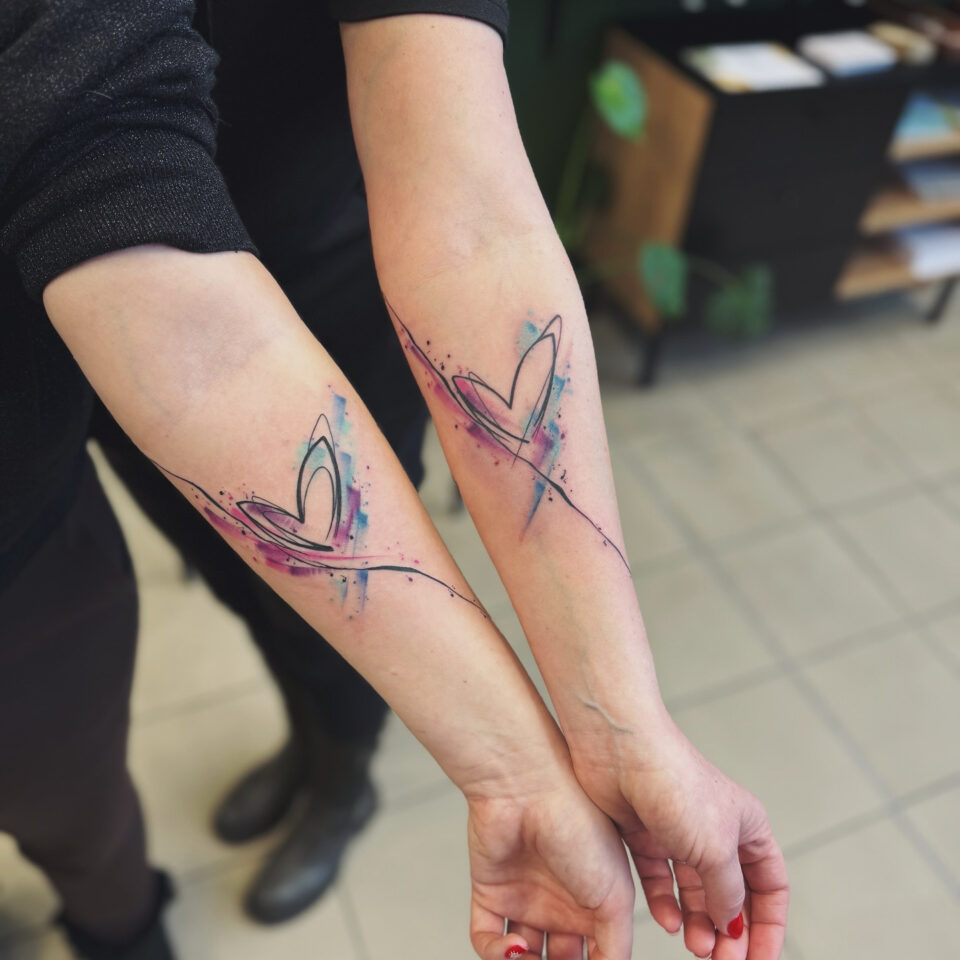 Společná tetování srdce, symbol lásky na předloktí
