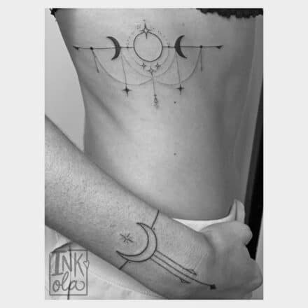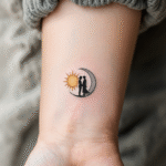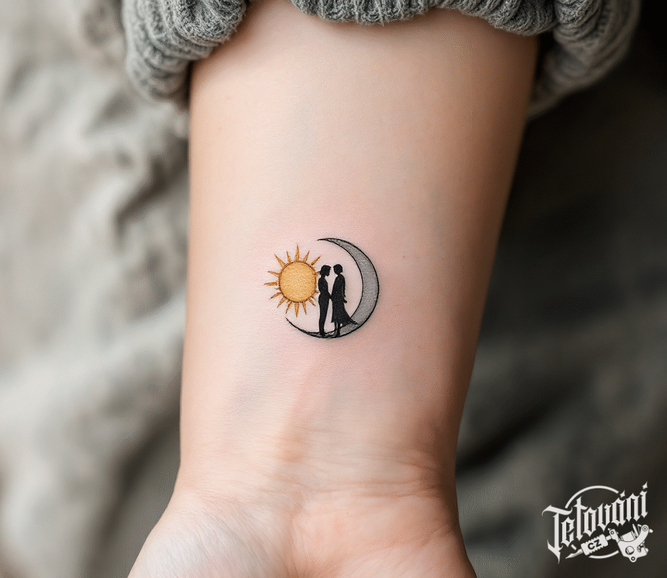 Společná tetování, svatební tetování, svatba a planety slunce a měsíc na předloktí