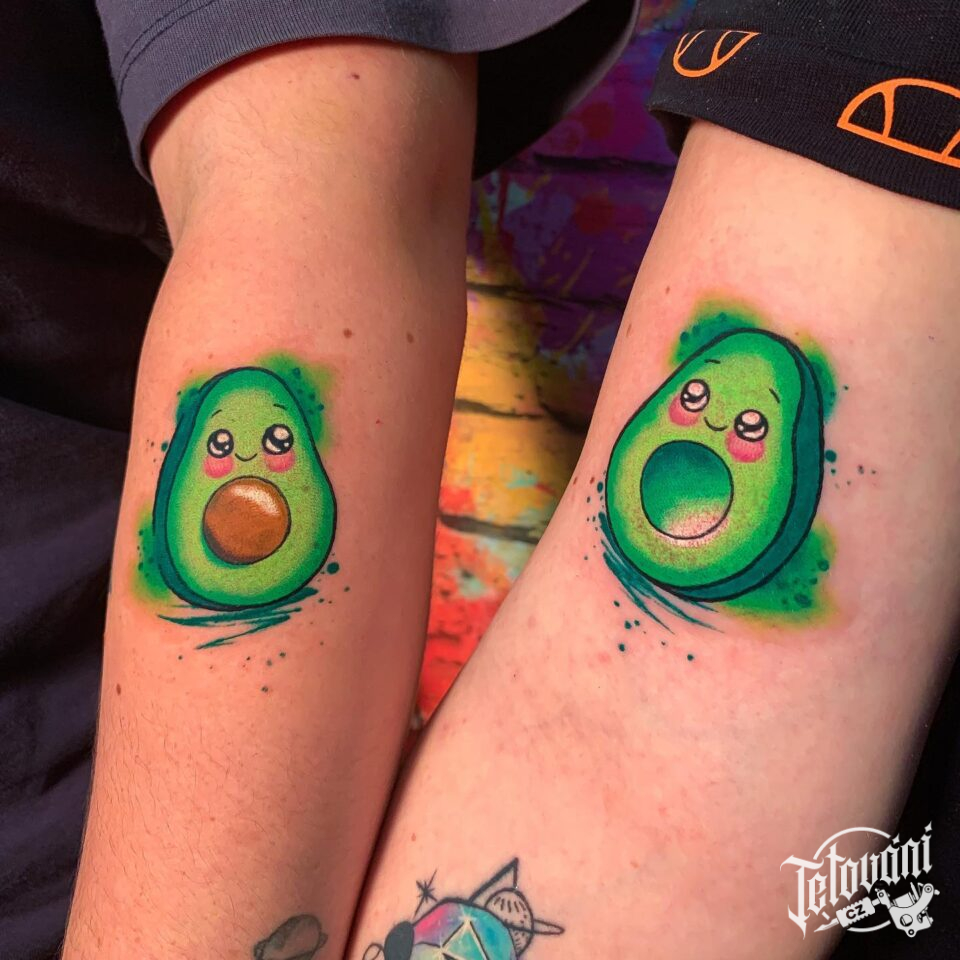 Společná tetování symbol zdraví avokádo na ruku