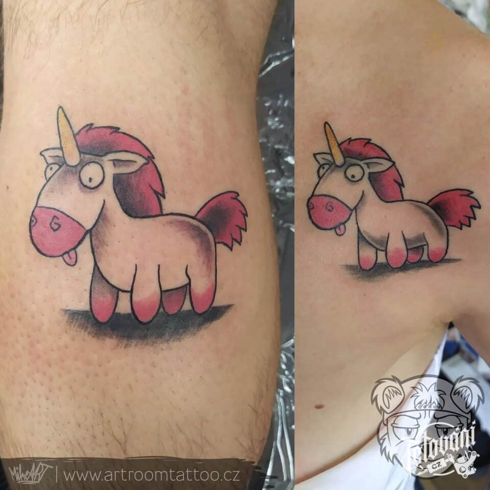 Společná tetování, zvířátko, postavička jednorožce na hrudi