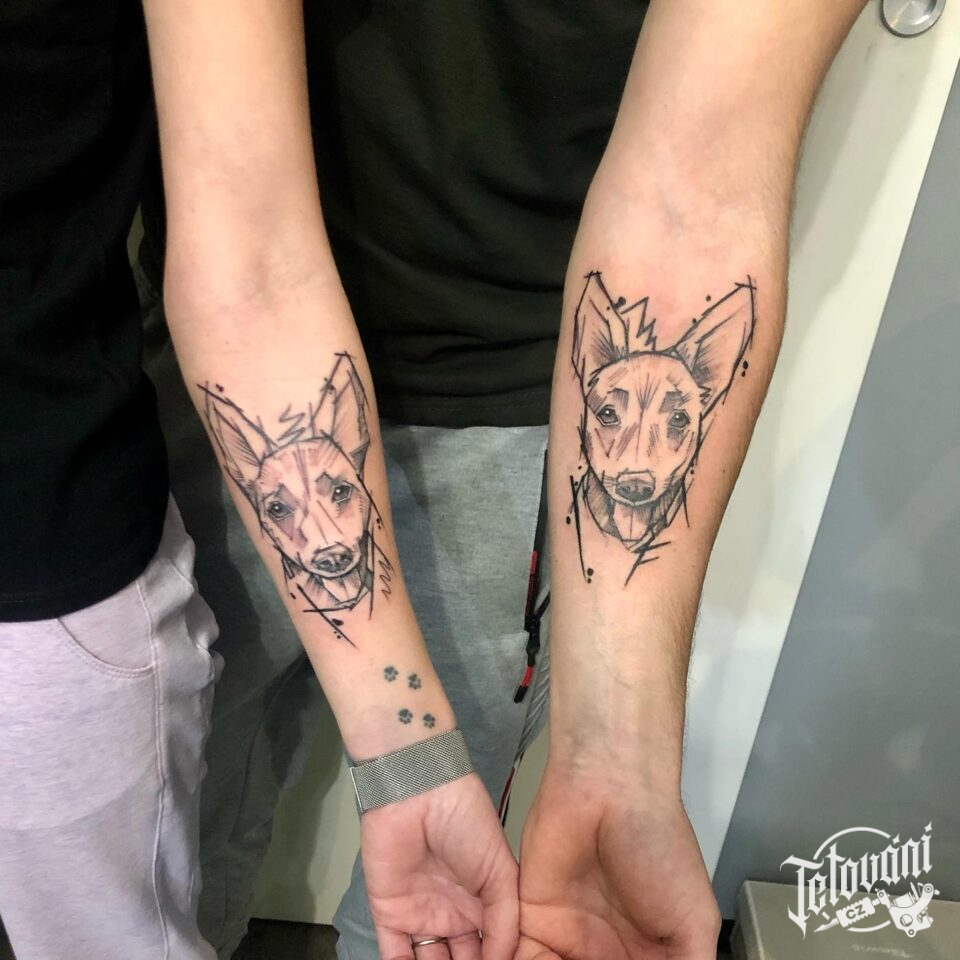 Společná tetování zvíře pes na předloktí