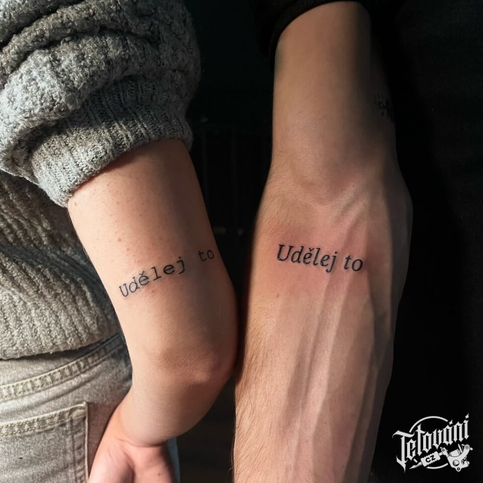 Společné tetování motivační nápis, motto na ruku