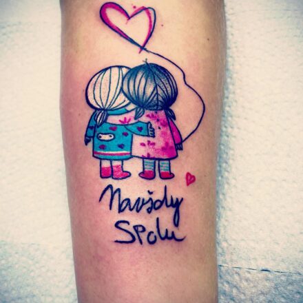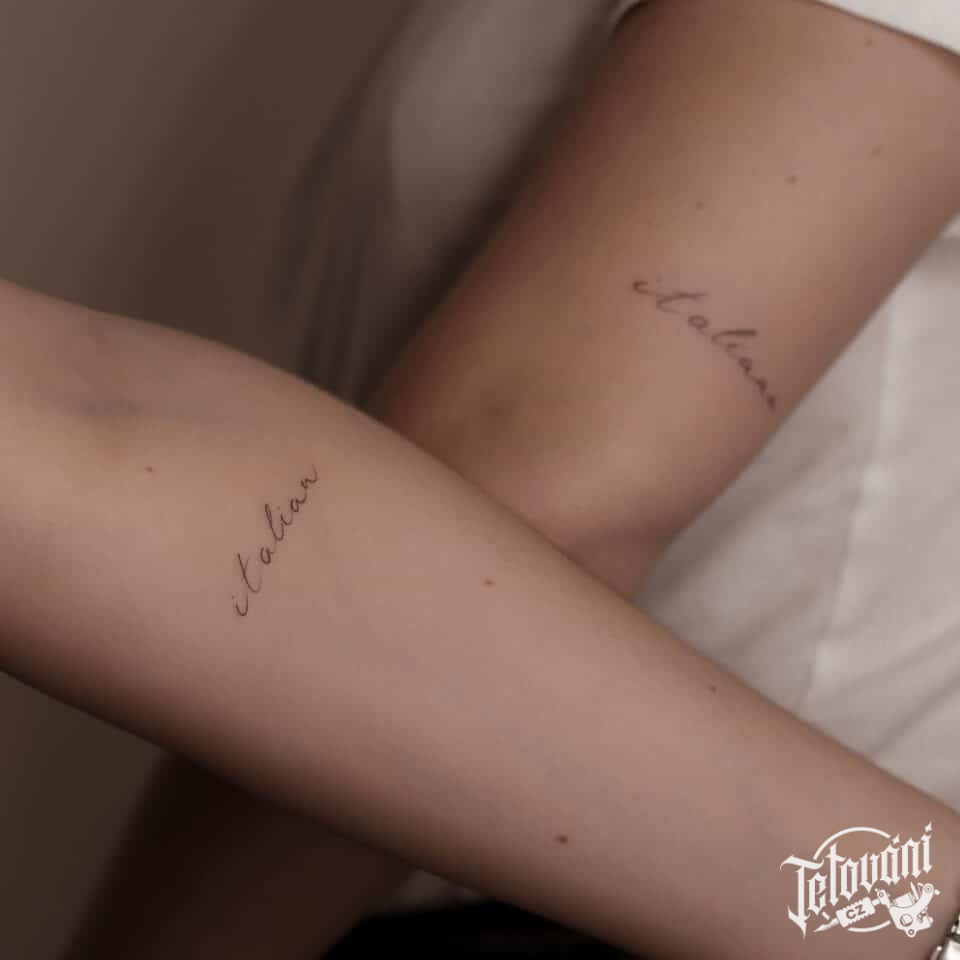 Společné tetování, nápis na předloktí
