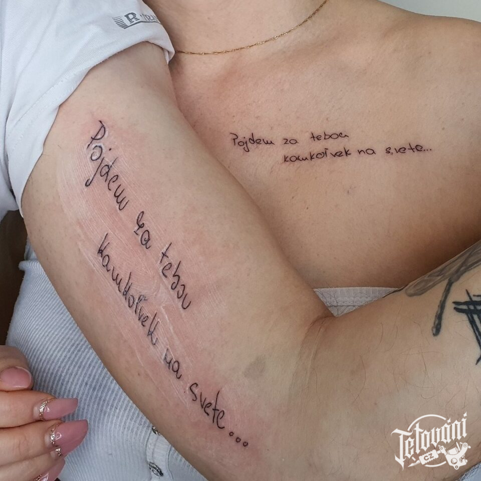 Společné tetování nápisy, citáty na ruku a pod klíční