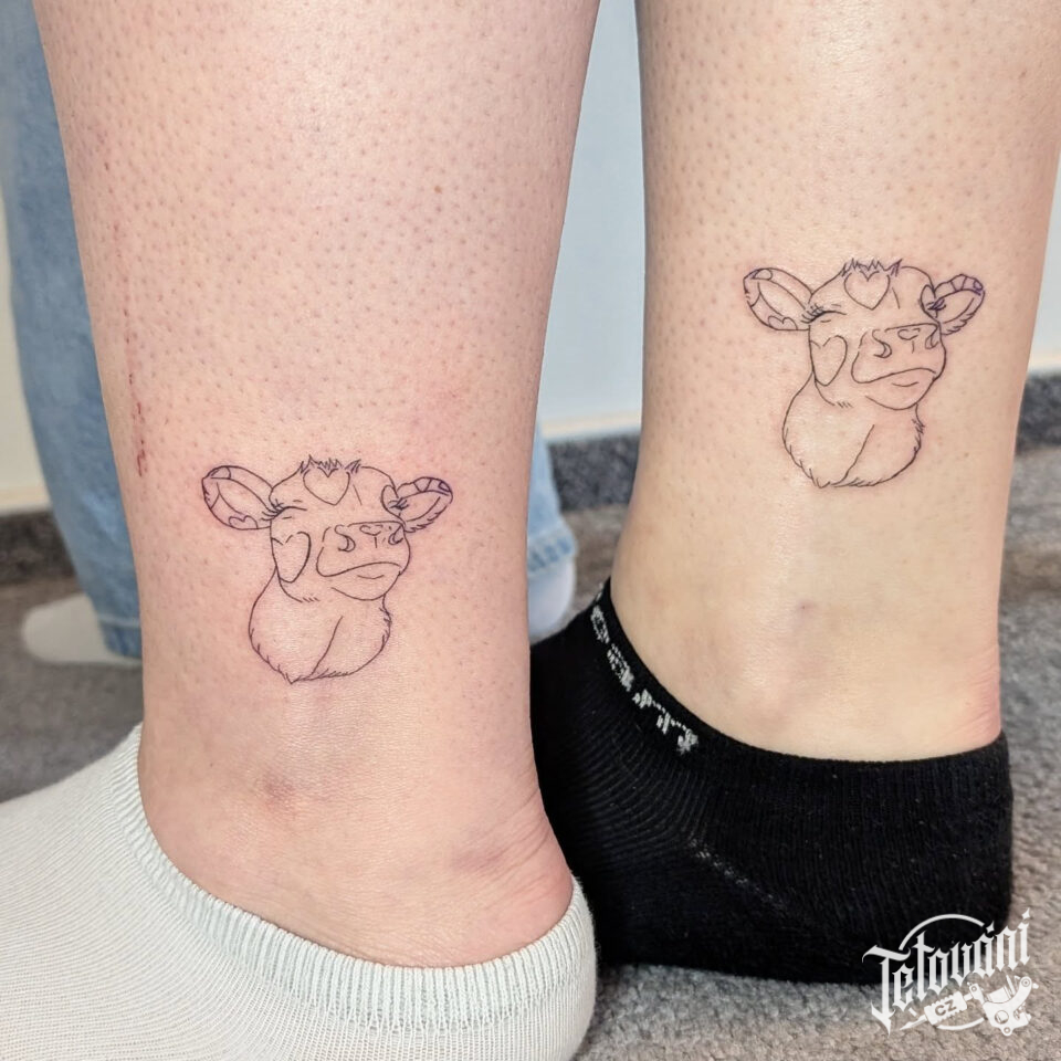 Společné tetování pro kamarádky, zvířata, krávy na kotníku