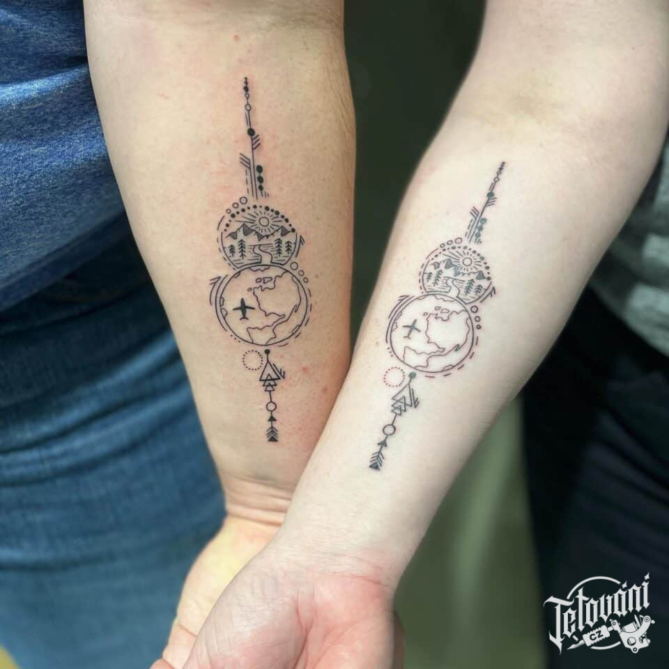 Společné tetování pro páry, cestování na předloktí