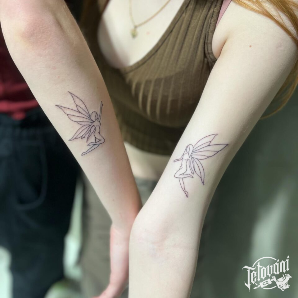 Společné tetování pro páry, nadpřirozené bytosti, víla na paži