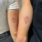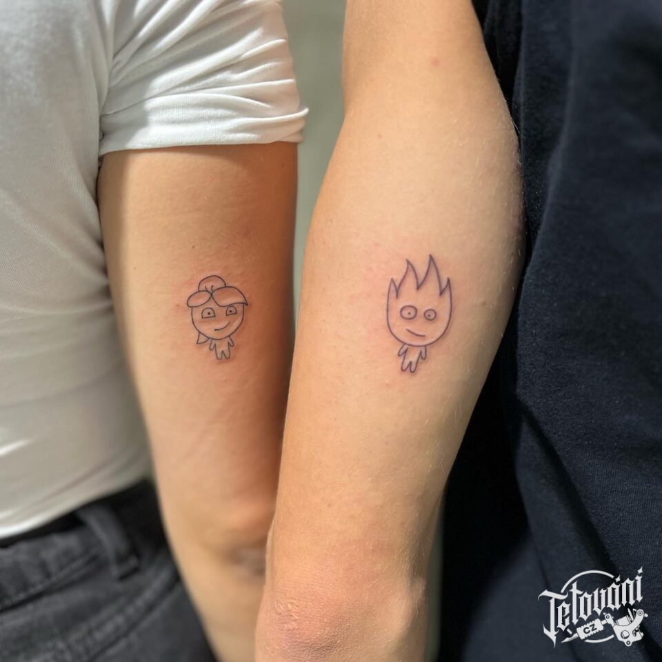 Společné tetování pro páry, živly, oheň a voda na paži