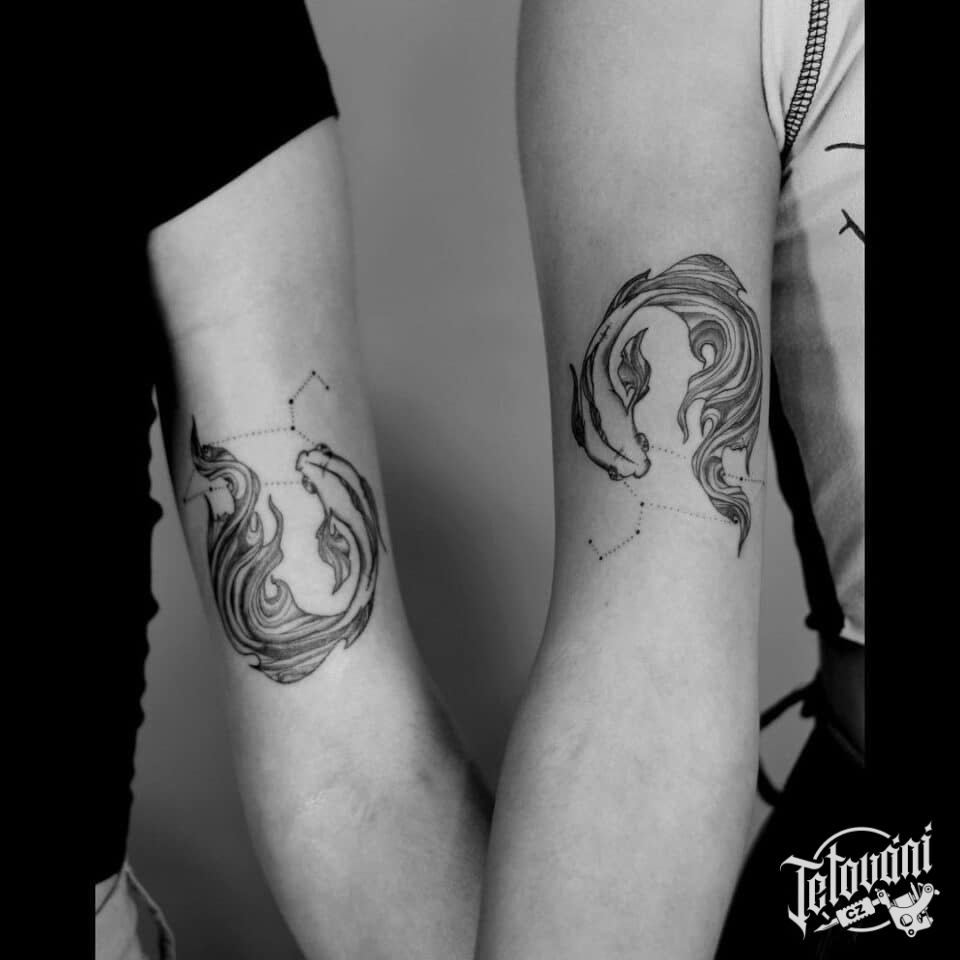 Společné tetování pro sourozence, pro sestry, zvířata, ryby znamení zvěrokruhu na paži