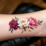 Společné tetování pro tři, květiny na zápěstí