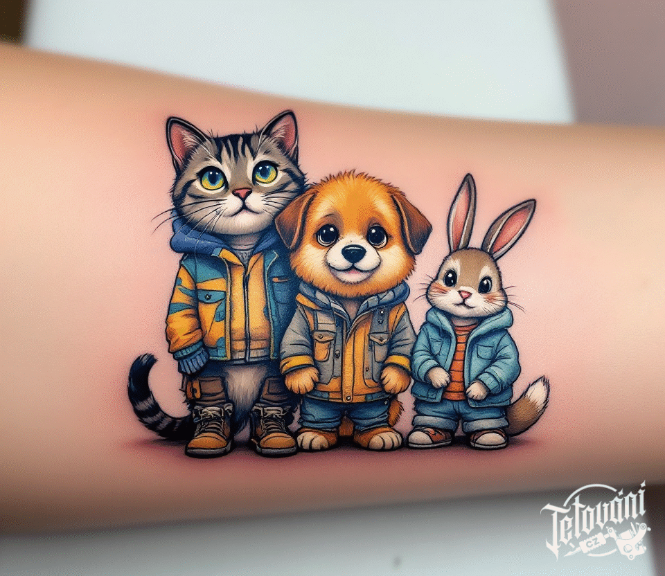 Společné tetování pro tři, zvířata na předloktí
