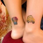 Společné tetování z filmů a pohádek, dopravní prostředky auta na kotníky