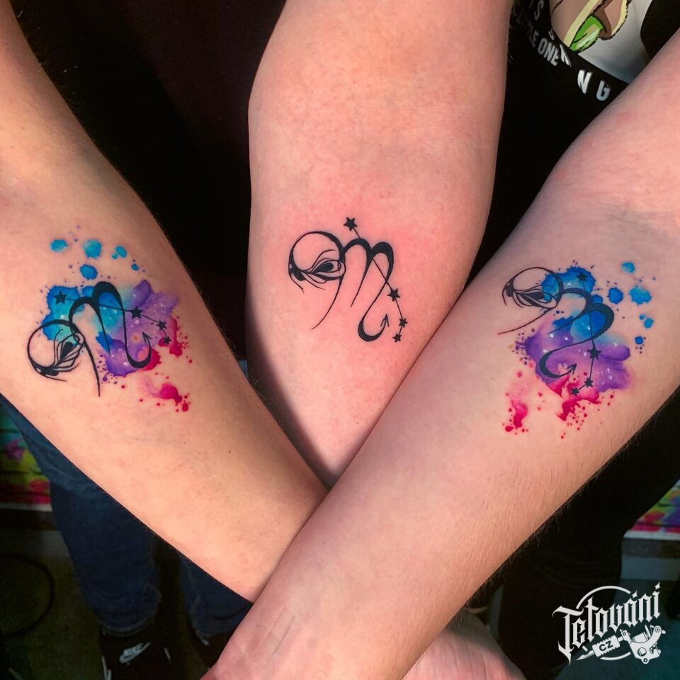 Společné tetování znamení zvěrokruhu štír na předloktí