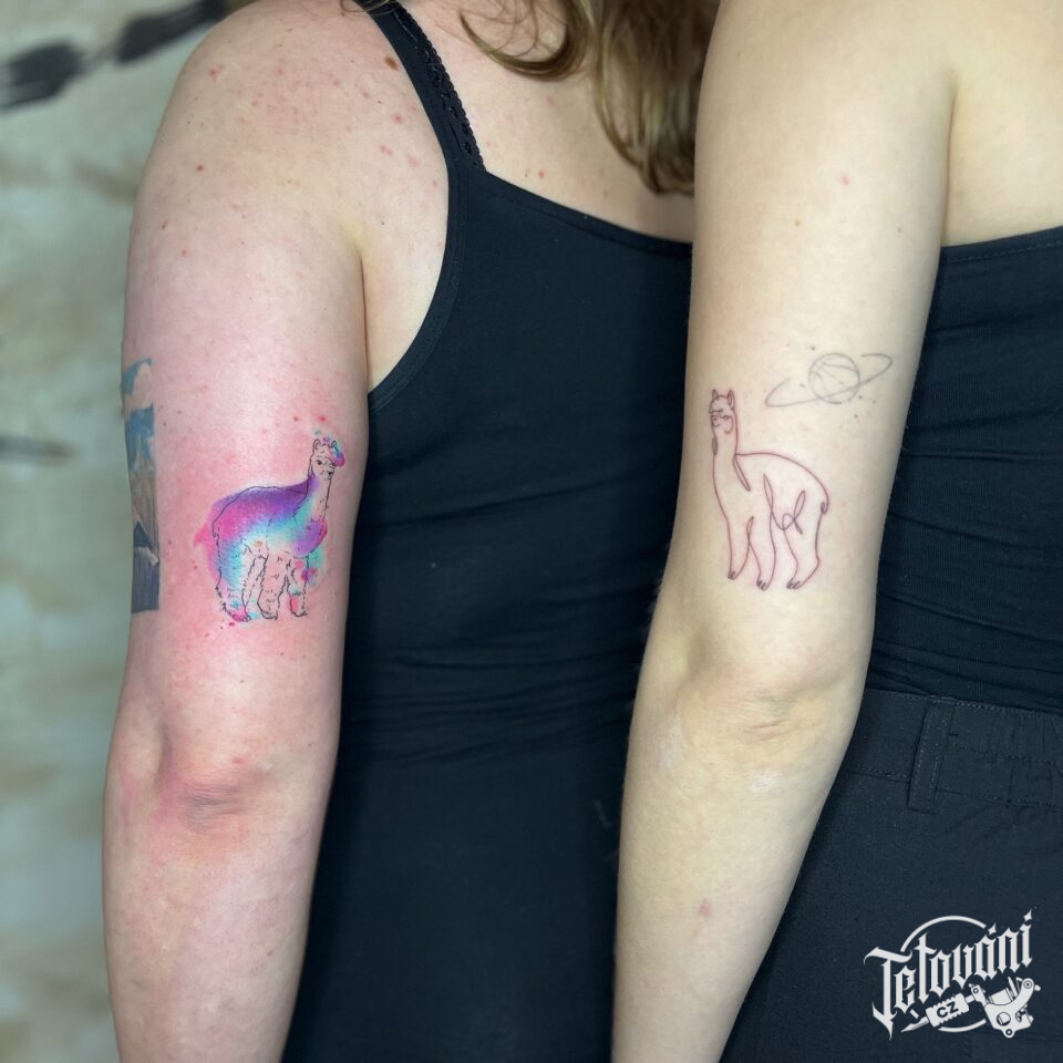 Společné tetování zvíře lama na rameno