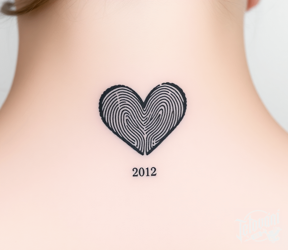 Svatební tetování, otisk prstu, svatba, srdce na krk