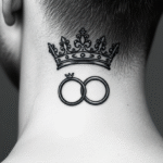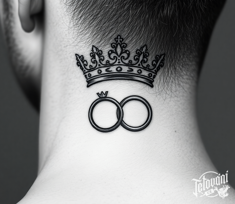 Svatební tetování snubní prsten, koruna na krku