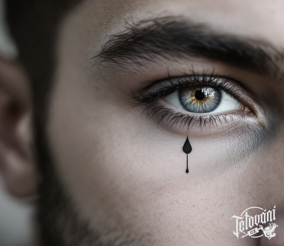 Symbolické tetování slzy pod oko na obličeji