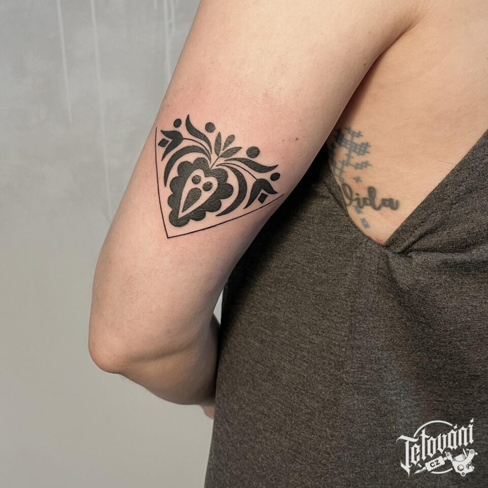 Tepování ornamenty, květiny na paži