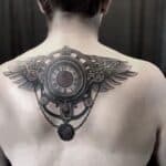 Tetování hodiny, křídla na záda