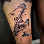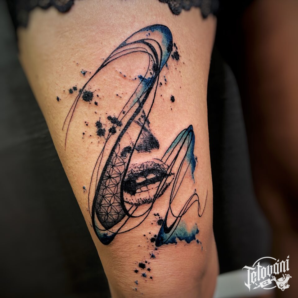 Tetován čáry, pusa na stehno