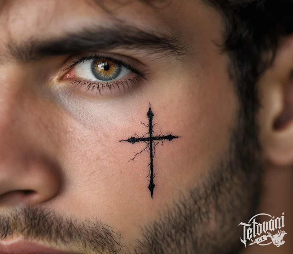 Tetován kříž pod oko