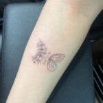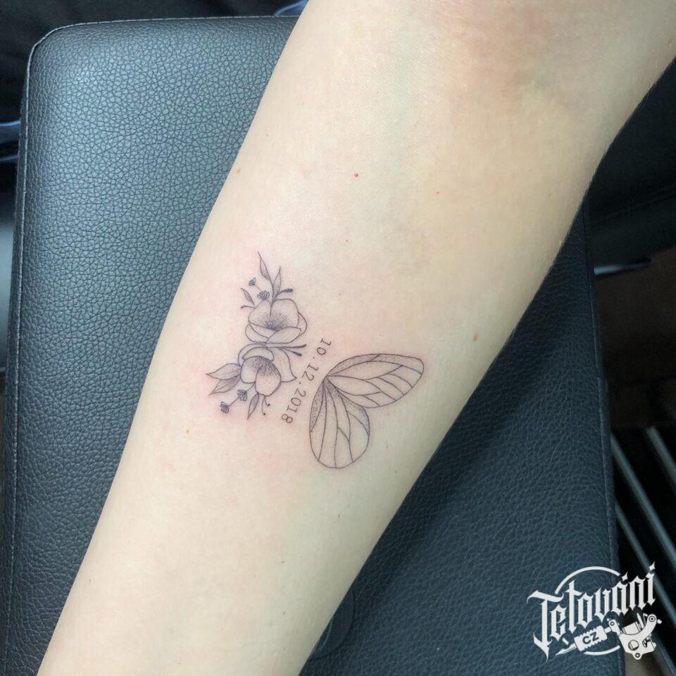 Tetování a křídlo motýla na předloktí