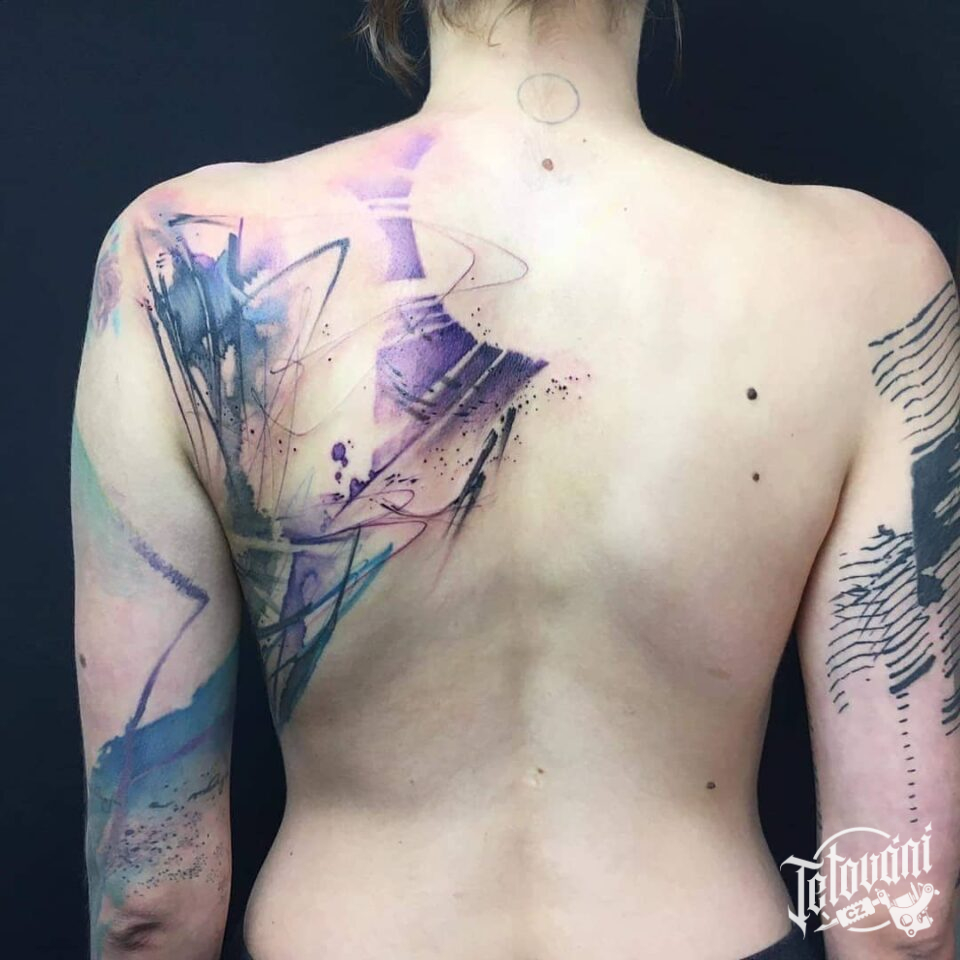 Tetování abstrakce, čáry a pruhy na zádech