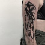 Tetování abstrakce, čáry, znaky a symboly na rameni