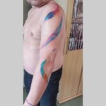 Tetování abstraktní barevné čáry na rukávu