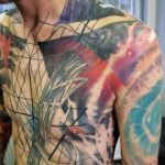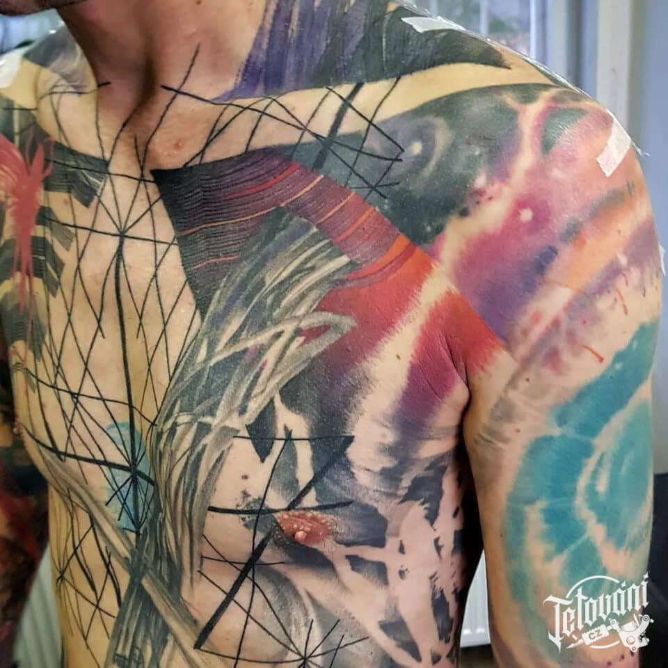 Tetování abstraktní čáry a pruhy na prsou