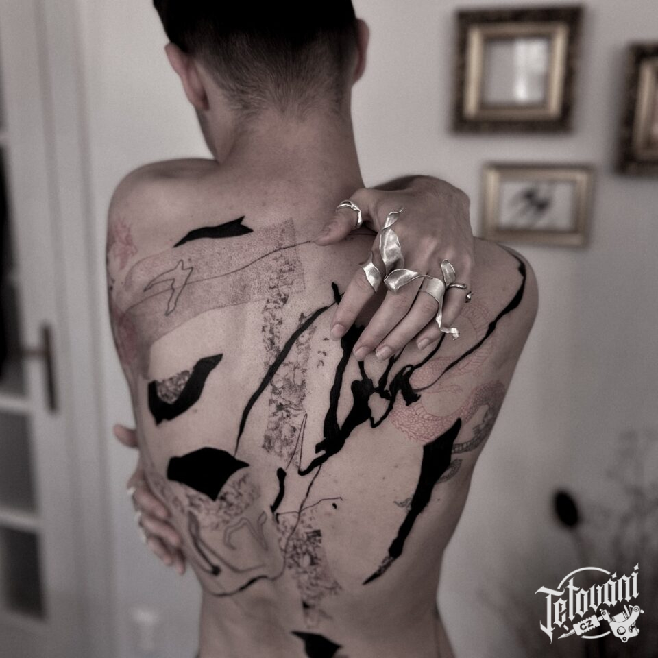 Tetování abstraktní čáry a pruhy na zádech