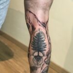 Tetování abstraktní čáry a strom na lýtku