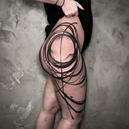 Tetování abstraktní čáry, kruh na ruku a prso