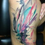 Tetování abstraktní čáry na boku stehna