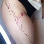 Tetování abstraktní čáry na boku stehna