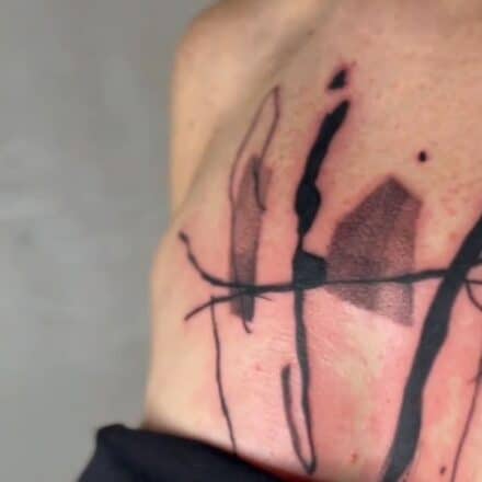 Tetování abstraktní čáry na břicho, nohu a ruce